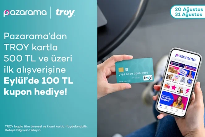 Online AlışverişTROY kartın ile Pazarama’dan 100 TL kupon kazan!