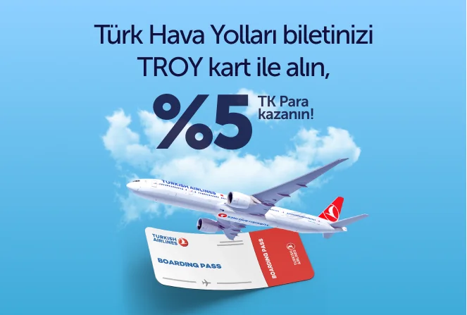 Online AlışverişTürk Hava Yolları biletinizi TROY kart ile alın, %5 TK para kazanın!