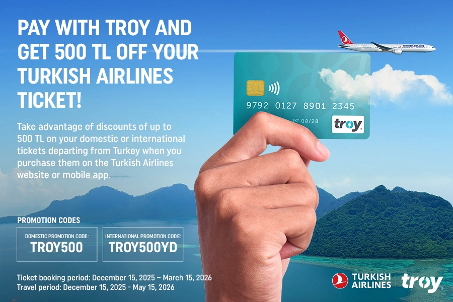 TransportationPay with TROY and get 500 TL off your Turkish Airlines ticket!