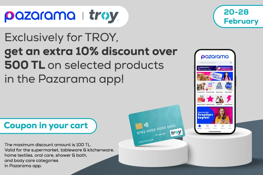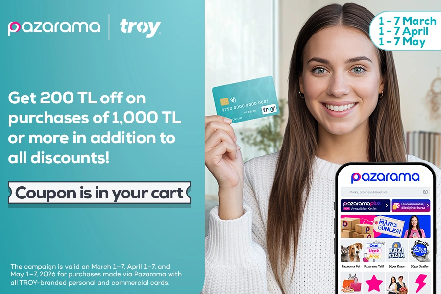 Online ShoppingGet a 200 TL discount at Pazarama with your TROY Card