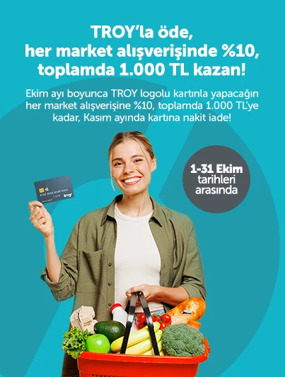 TROY’la öde, her market alışverişinde %10, toplamda 1.000 TL kazan!
